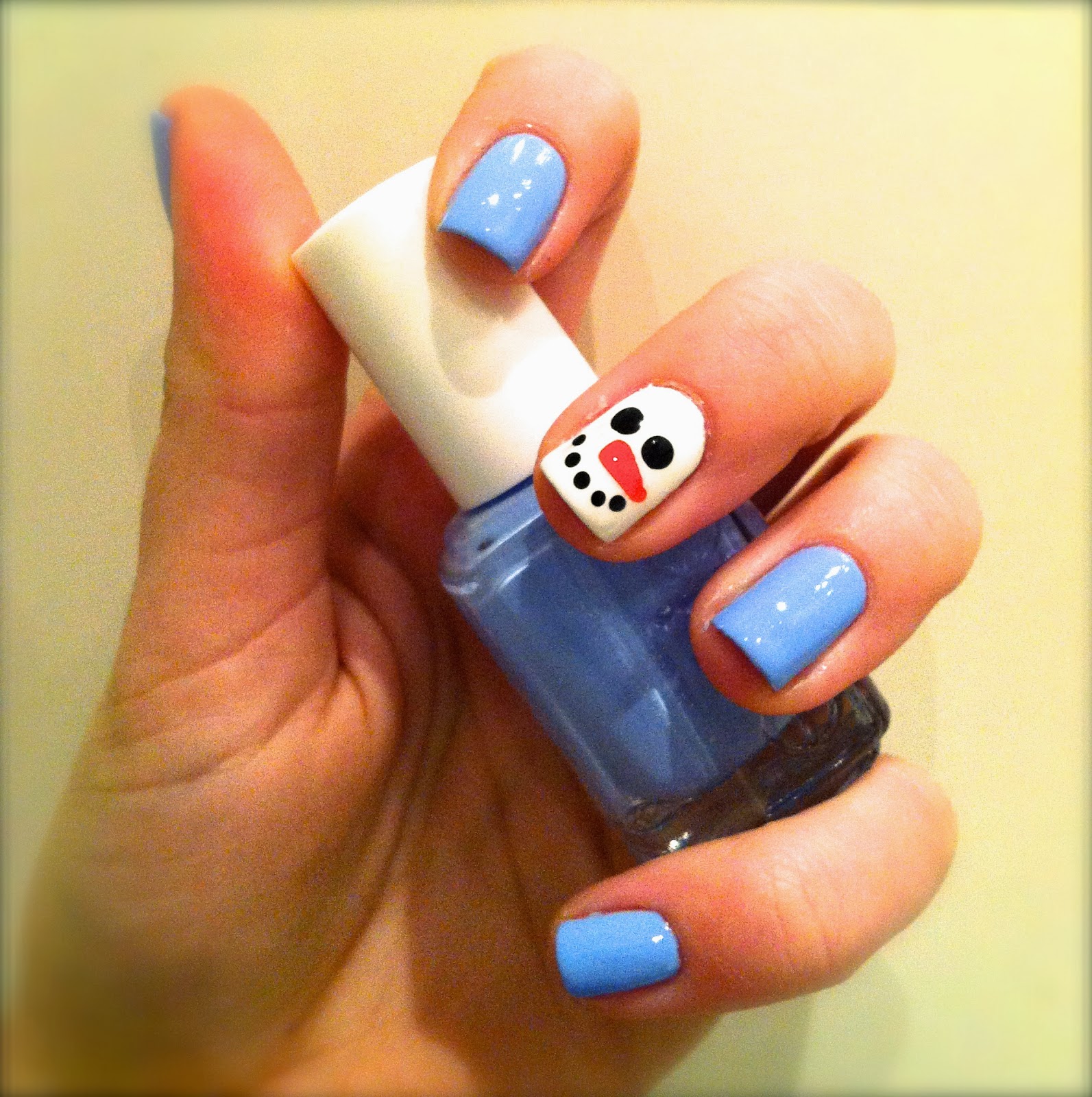 For the white base I used O.P.I Alpine Snow and afterwards I painted on the orange carrot nose, black eyes and his big, black smile with two different sized dotting tools. So easy and simple.